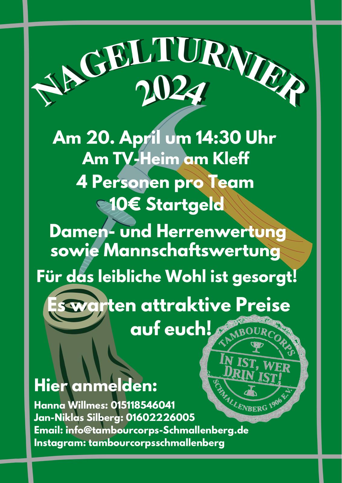 Nagelturnier des Tambourcorps Schmallenberg ab 14:30 Uhr am TV-Heim am Kleff |